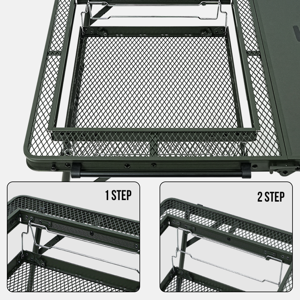 When connected with the Wild Field Low BBQ Table, it is only available in the 2-level length adjustment mode.