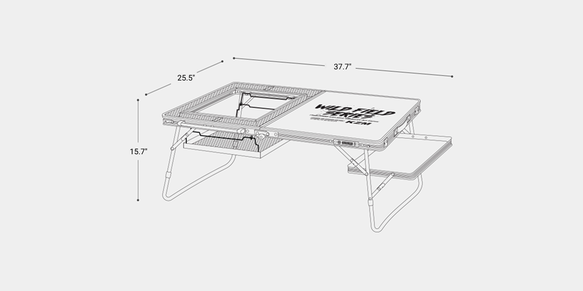 Enhance your low-level cooking experience with the Wild Field Low BBQ Table — featuring a height-adjustable burner plate, convenient side table and hanger, easy-lock folding design, and Infinity System for connecting multiple tables, all in a compact, portable design.