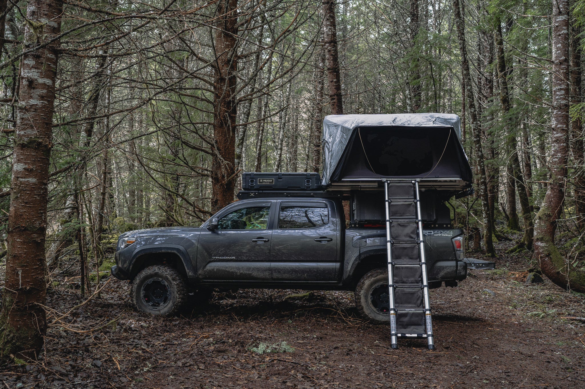 The ultimate outdoor experience! Combine your rooftop tent with an ES Awning for the best camping setup.