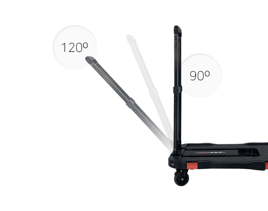 Made from durable PP and steel, this cart supports up to 100kg (220 lbs) and is equipped with 3-inch rubber urethane wheels for a quieter, smoother ride. The cart features both rotating front wheels with brakes and fixed rear wheels, providing stability and easy handling. An ergonomic handle with a push-button adjustment allows angle control from 90° to 120° for comfortable maneuvering. Safety features include fluorescent reflective stickers for visibility, and four locks securely hold the crate in place.