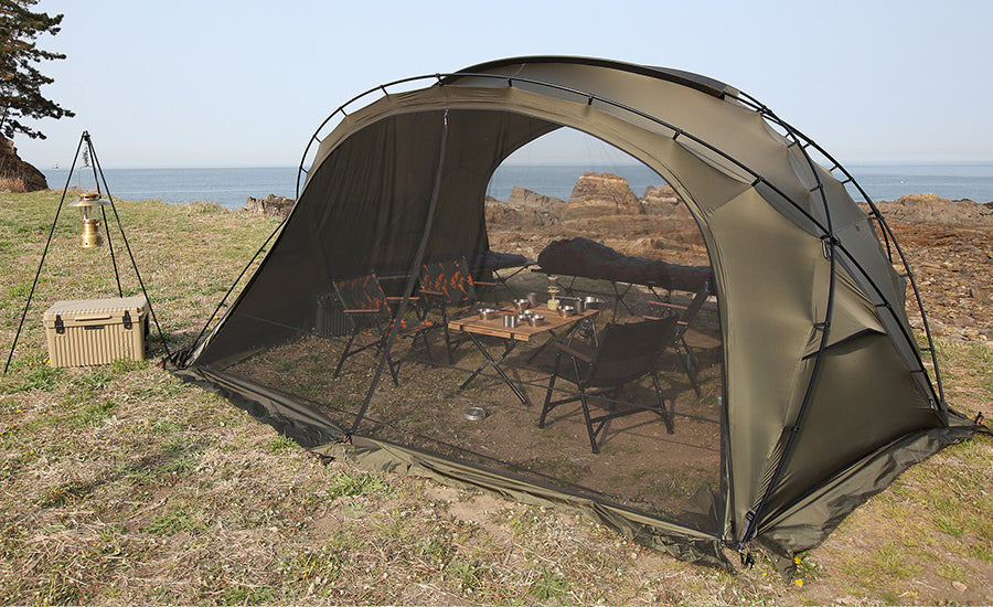 MinimalWorks Agora Vestibule Mesh Window is designed to attach to the Agora Vestibule. It offers a refreshing open atmosphere while protecting against sudden weather changes, allowing for uninterrupted camping comfort. Enjoy a pleasant indoor environment by combining the wide vestibule space with the mesh window.