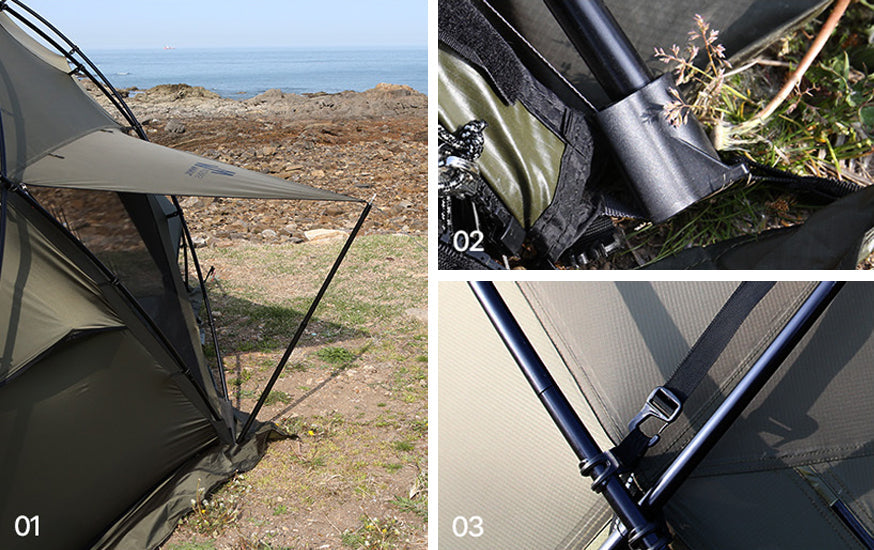 1. Side mesh ventilation that can be fixed with poles