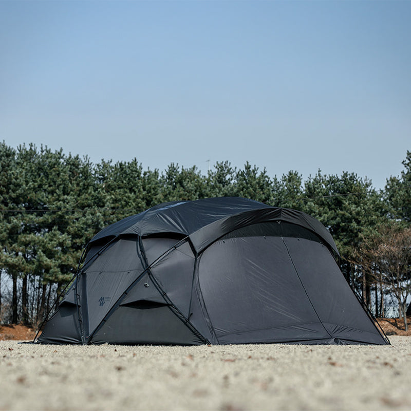 MinimalWorks Agora Vestibule is exclusively designed for the Agora shelter. When combined, it creates a separate front room that can be used for storage or simple cooking, expanding the shelter’s functionality beyond the main tent area.