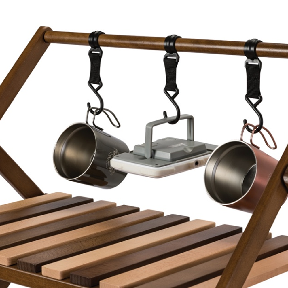 Elevate your outdoor organization with the Bellowood Shelf. The warm, two-tone beechwood texture creates a cozy interior vibe, whether in your living room or at a scenic campsite. With its unique hanging bar for easy access to gear and a sturdy frame that folds in seconds, it’s the ultimate statement piece for the discerning camper.