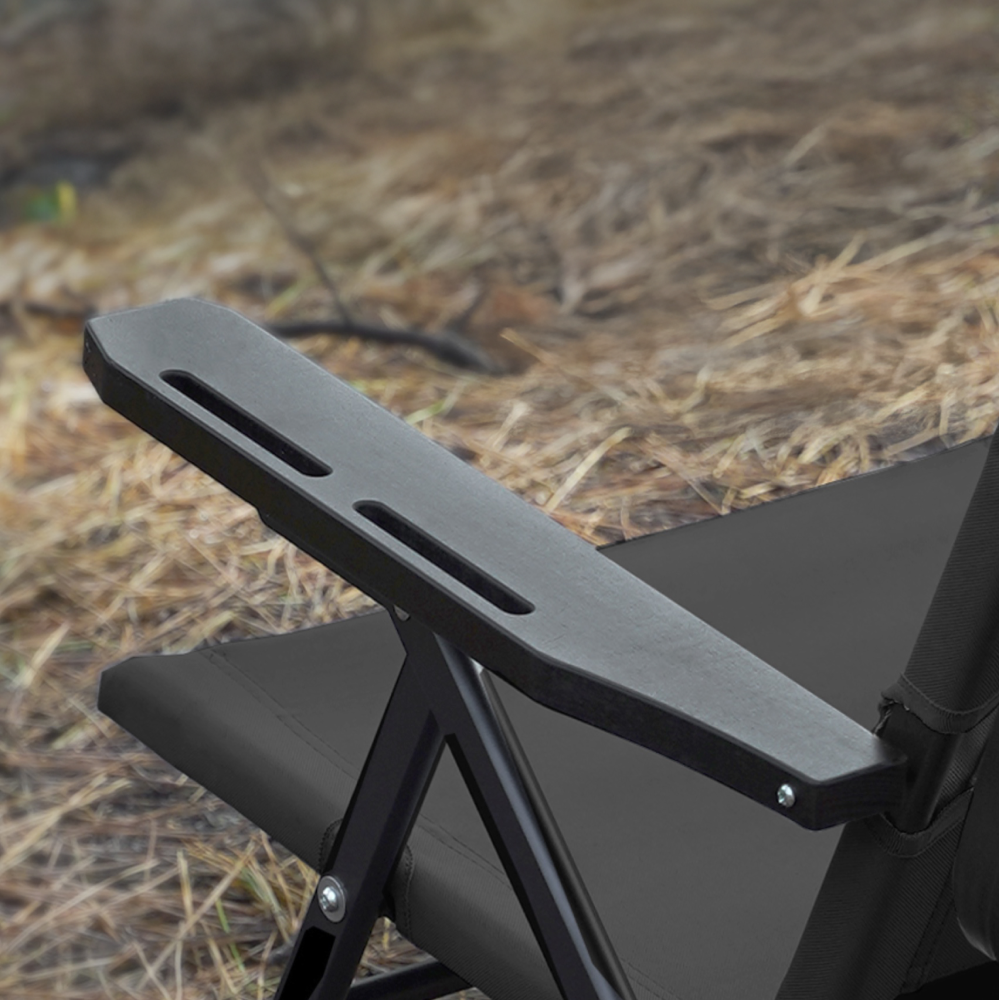 The chair armrests are crafted from high-quality, durable solid wood for strength. Additionally, the multifunctional groove on the handle allows you to hang camping items, making it both practical and convenient.