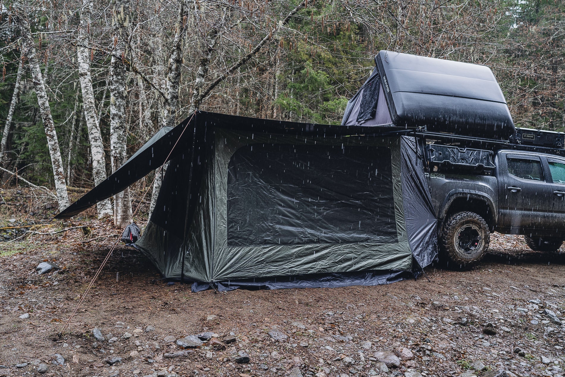 Designed to serve as either a fully enclosed room or a mosquito net, the LNT awning screen with a black coating offers protection from sunlight and cold weather, wards off insects, and ensures additional privacy. This awning screen is easy and quick to set up, compatible with the LNT awning models (But it can be used independently without any cars or awning with extra poles). It boasts a durable waterproof fabric and a distinct ceiling to maintain your preferred room temperature.