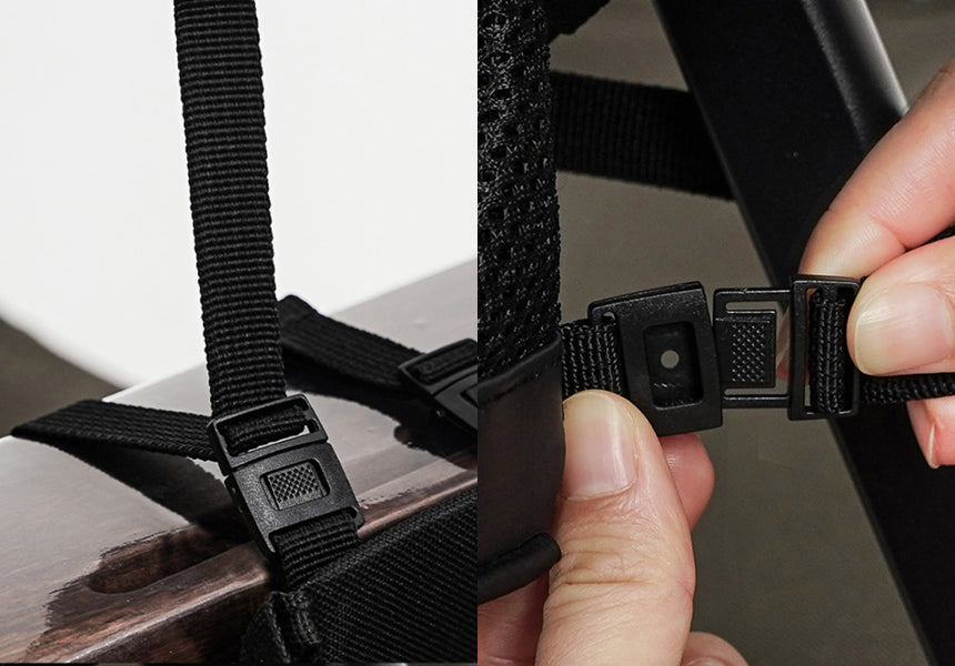 Its durable mesh body and buckle strap easily attach to chairs, tables, or other frames for convenient storage anywhere.