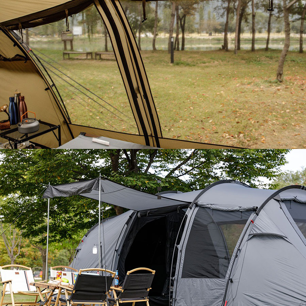 With four double-sided entrances, the tent offers flexible access and excellent ventilation, letting you move in and out freely from any direction.
