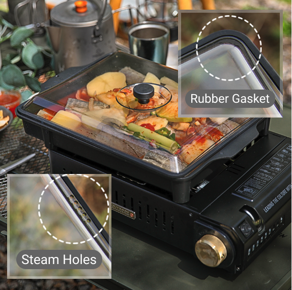 Cool evenings call for warm, shared meals, and this stove includes a dedicated lid designed specifically for hot pot cooking. The transparent lid makes it easy to monitor your food without lifting it, while the low heat-conductive handle allows comfortable opening and closing during cooking.