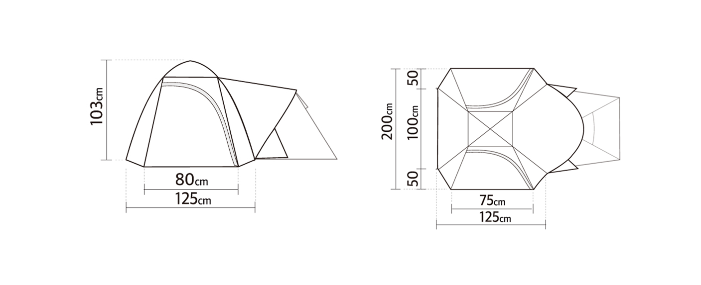 • 49.2” (W) × 78.7” (L) × 40.5”(H) | 125 cm × 200 cm × 103 cm