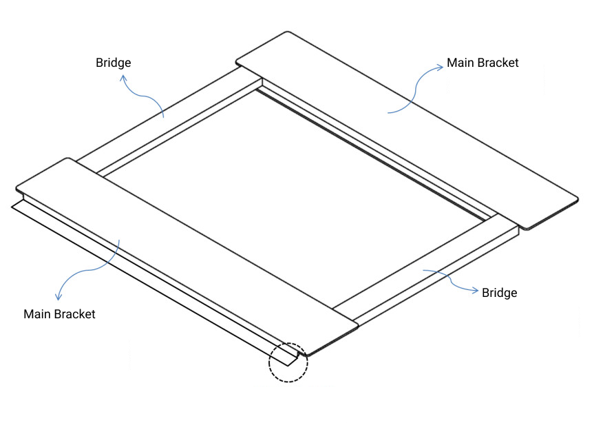 Align the bridges with the designated grooves on the main brackets and gently slide them into place until they are securely attached.