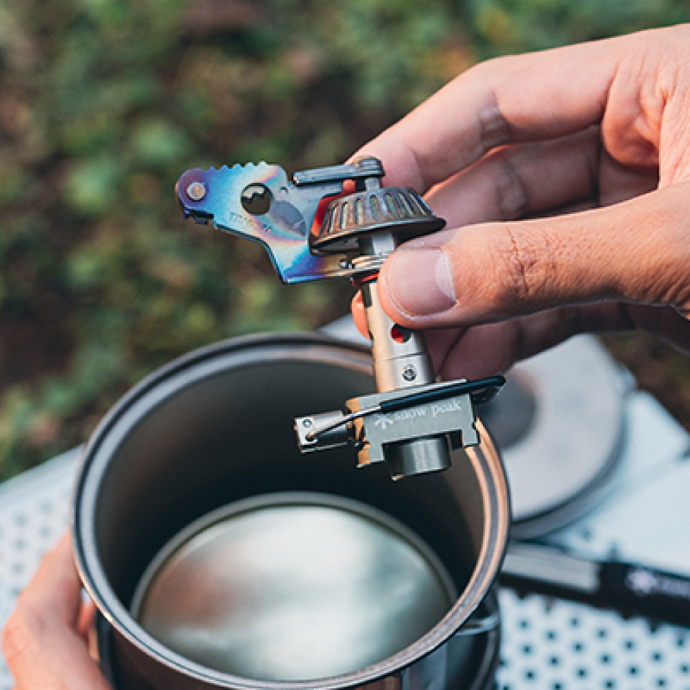 The LiteMax Titanium Stove is an ultralight titanium backpacking stove. The stove features foldable arms that offer a built-in windscreen for maximum flame protection and supports pans up to 5.5" diameter. At a mere two ounces, the LiteMax is Snow Peak’s lightest stove and is barely detectable in your pack.
