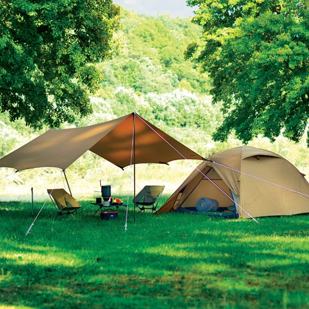 The entire tarp is treated with a PU (Polyurethane) coating and boasts a high hydrostatic head rating of 2,000mm. This ensures complete waterproofing against sudden downpours, keeping the area beneath the tarp dry and comfortable.
