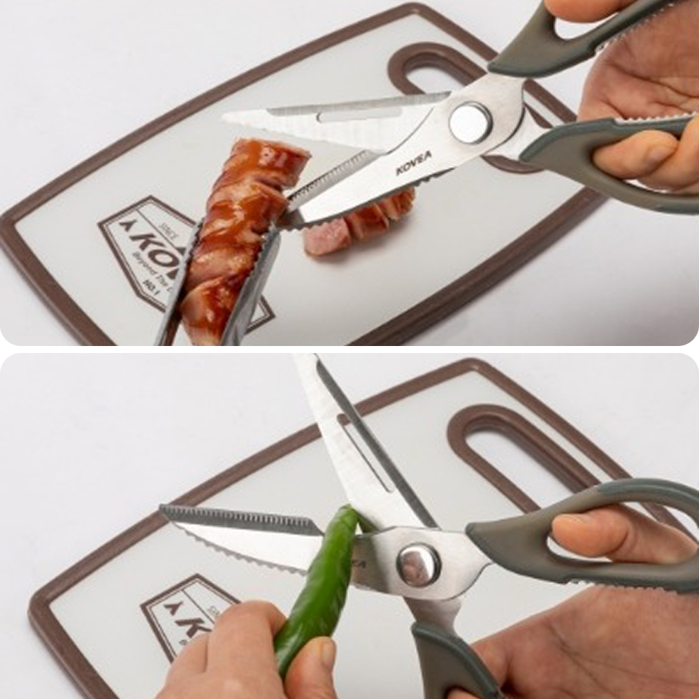 The finely honed stainless blades deliver powerful, precise cutting performance—perfect for slicing through meat or tough materials. The serrated inner edge keeps slippery ingredients firmly in place, ensuring clean, stable cuts every time.