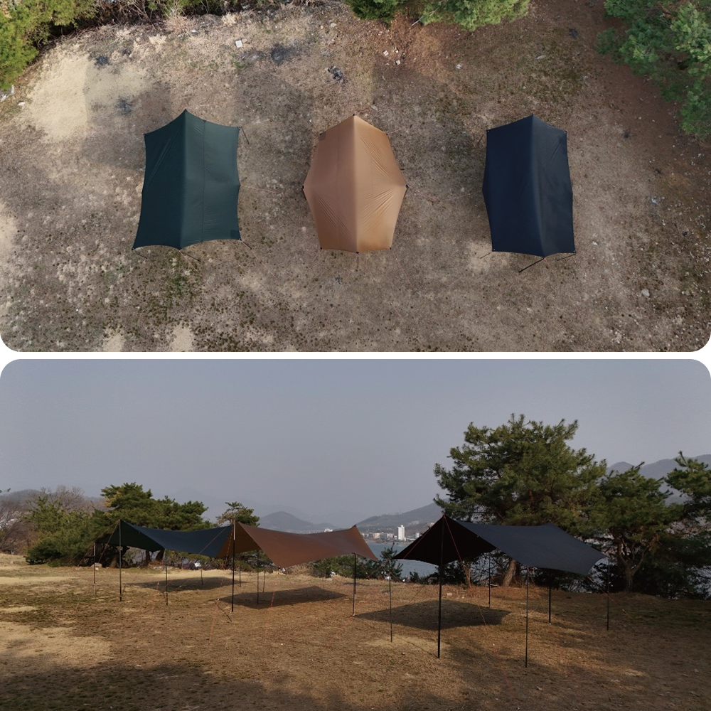 The Octa Tarp TP550 features an 8-point octagonal structure that allows multiple pitching styles—from open canopies to enclosed shelters. Made from 40D double ripstop nylon with dual-silicone coating, it delivers superior durability and reliable weather protection.
