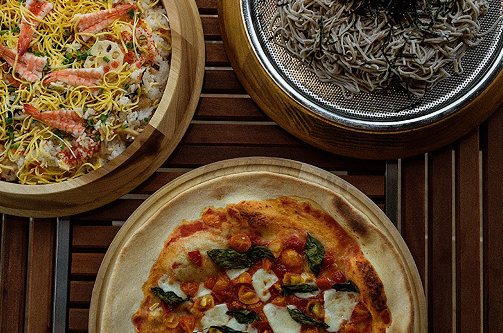The Party Plate is a Japanese-designed laminated wood serving plate with removable inner stainless steel plates for versatile use. All components stack neatly for compact storage, making it suitable for parties or small gatherings.