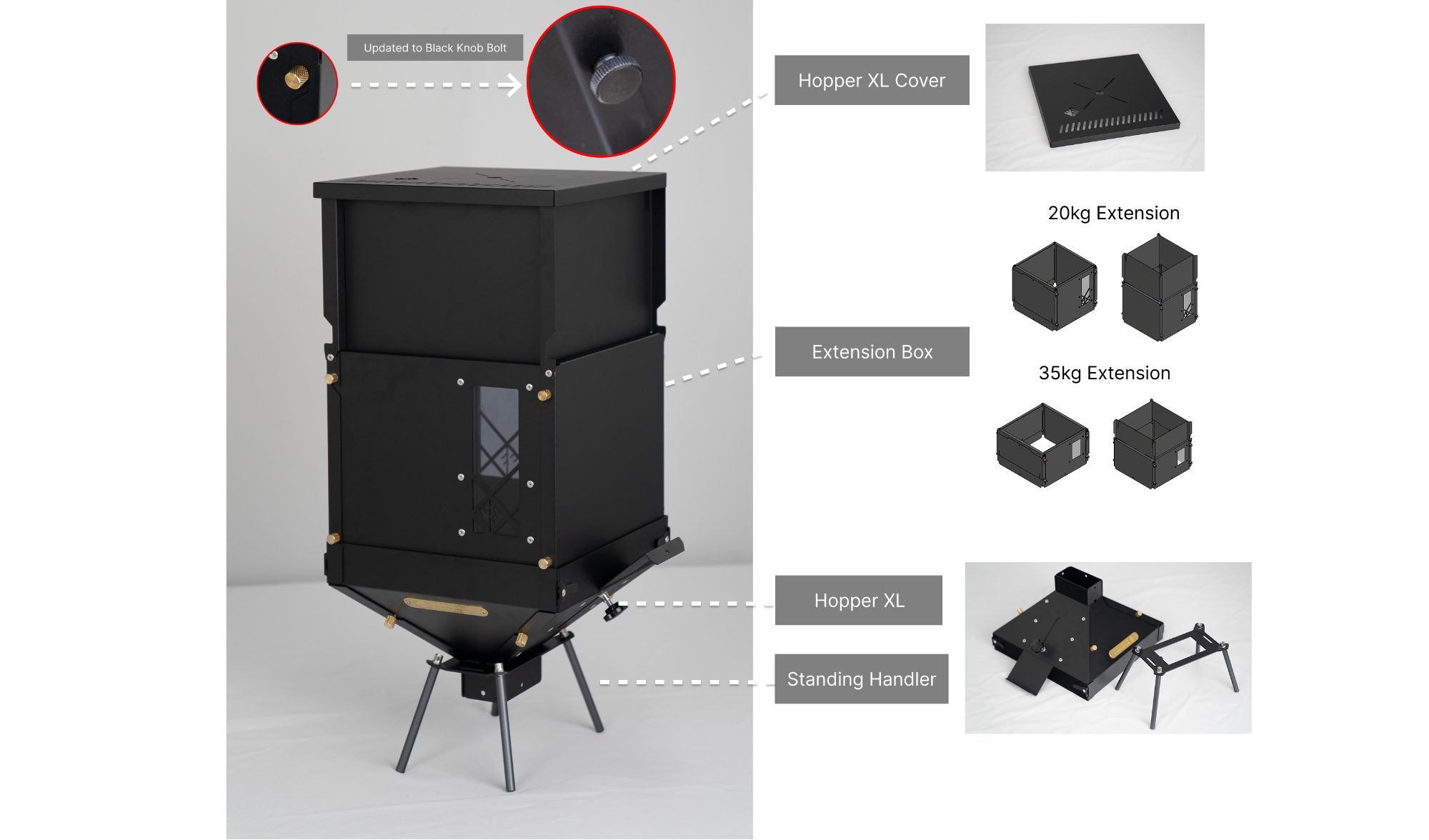 - Pellets Load Capacity: Regular holds up to 20 kg(44 lbs), Large holds up to 35 kg(77 lbs)