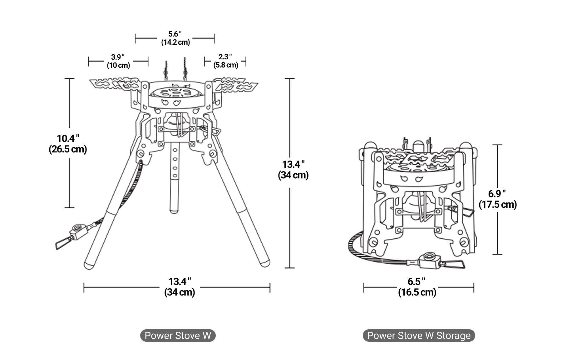 The Power Stove W delivers exceptional high heat output with a wide and stable burner design. Featuring four adjustable height levels and non-slip rubber feet, it ensures reliable cooking performance in various outdoor environments.