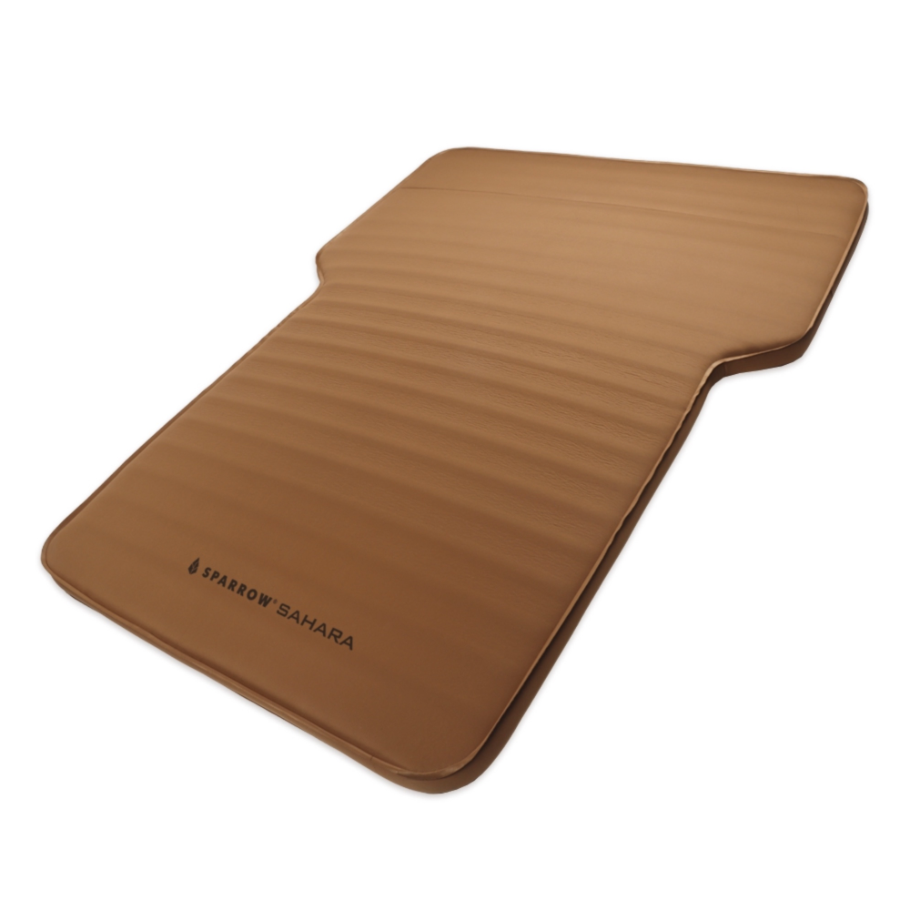 📌 The Sahara Multi Mat is designed for spaces at least 190 cm (74.8") long and 130 cm (51.1") wide with a 7 cm (2.7") thickness. This mat is made for car camping and includes features like wheel well cutouts and a non-slip bottom. Because of its shape, it may leave gaps when used in a rooftop tent with a flat floor of similar size.