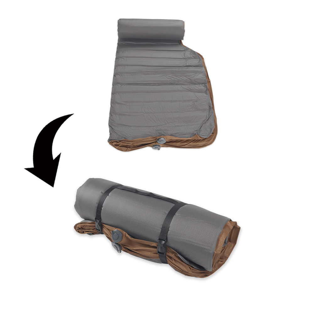 This is a roll-up type: after easily releasing the air with the swing valve, roll up the mat and store it in the dedicated carrying bag.