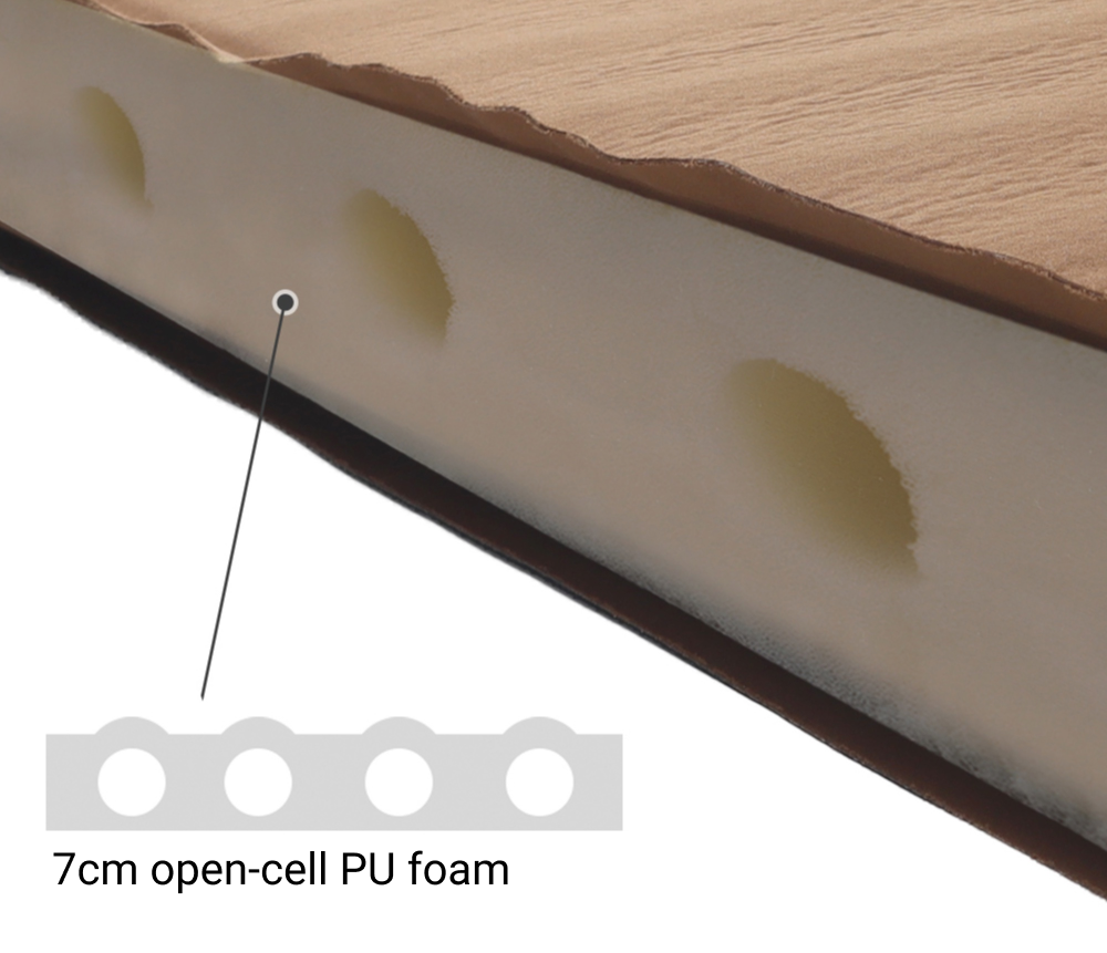 The Sahara Multi Mat is built with high-density PU foam for outstanding durability and resilience. With a 7cm(2.7") thickness and an impressive R-Value of 8, it effectively blocks ground chill to deliver a warm and comfortable night’s sleep.