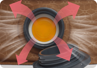 When the internal swing valve is positioned as shown in the image, air is released smoothly and does not flow back inside even if you stop midway, ensuring convenience.