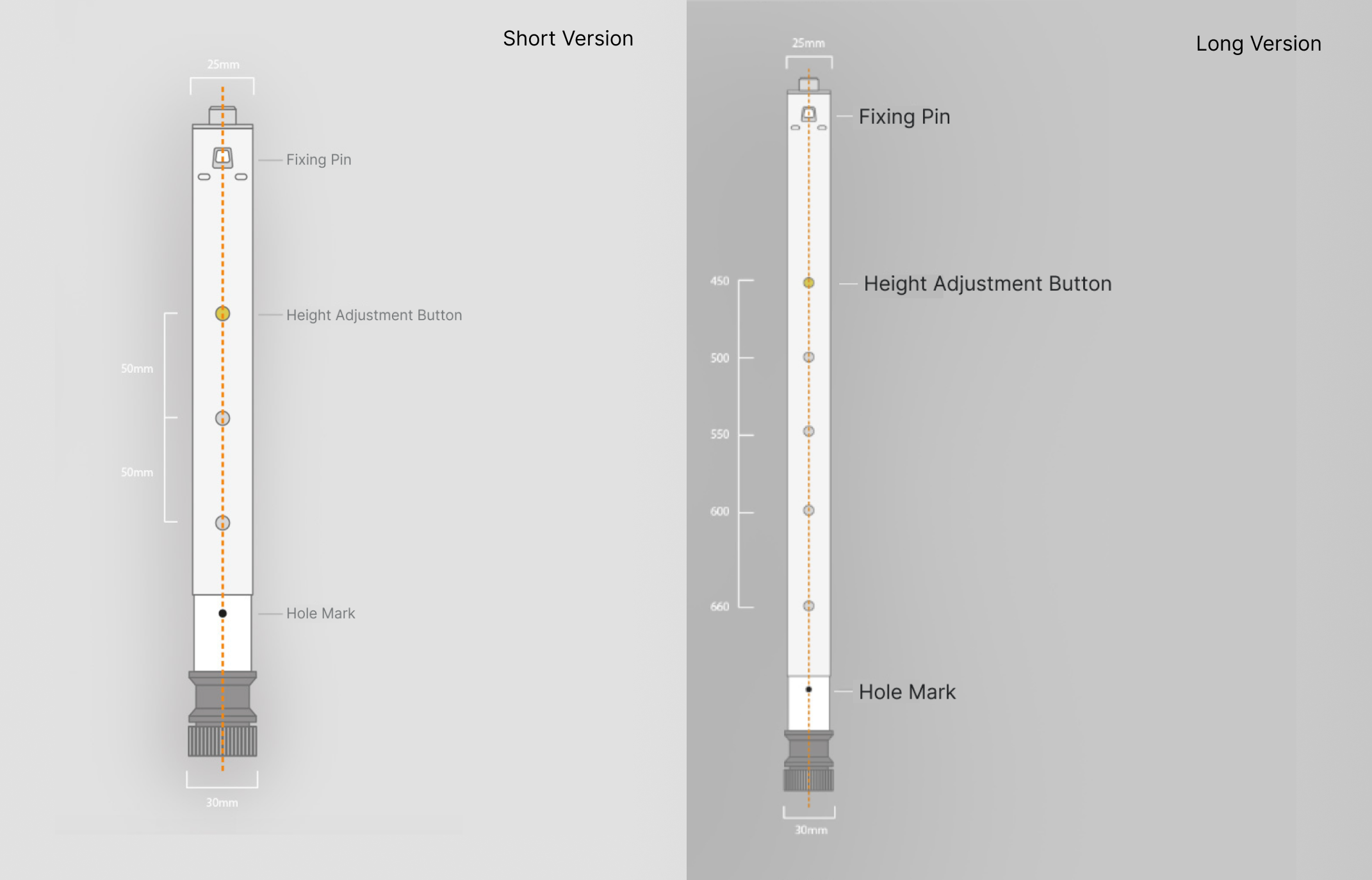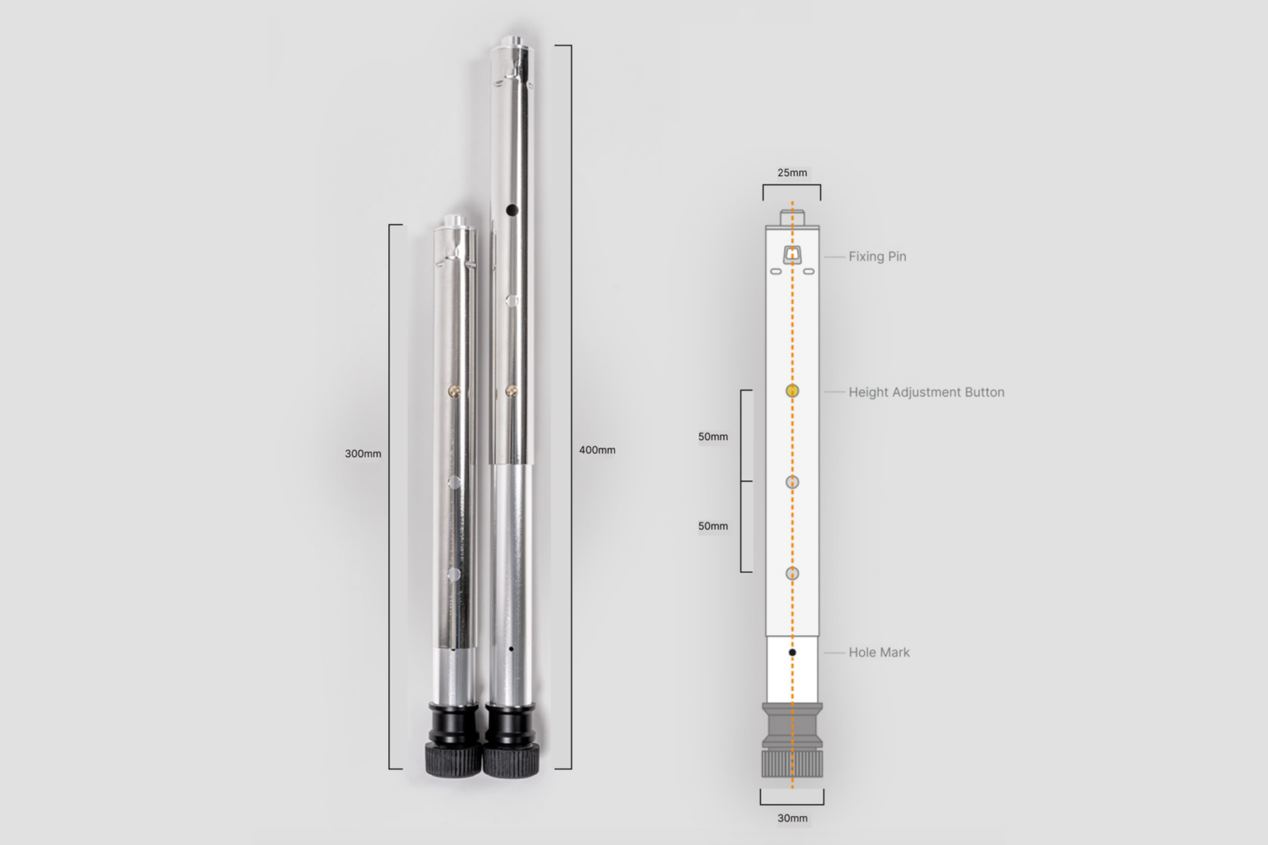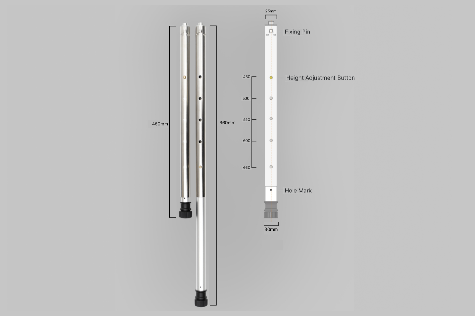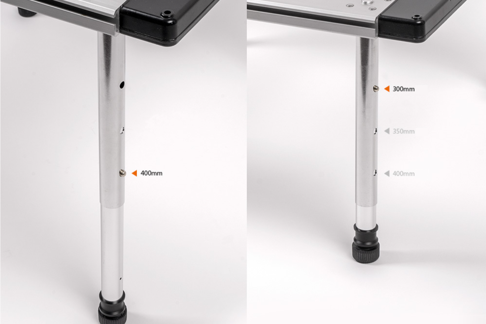 The Stainless Steel Leg is compatible with many popular system tables and adjusts to three heights: 300mm, 350mm, and 400mm(Short Version) and five heights: 450mm, 500mm, 550mm, 600mm and 660mm (Long Version).