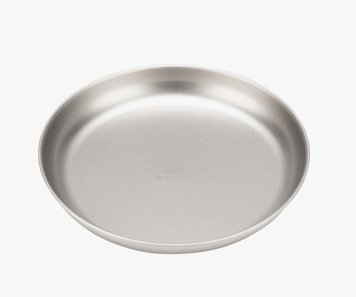 This plate is crafted from titanium to offer exceptional durability and lightweight portability. It is designed for versatile use in outdoor dining setups, whether camping or everyday occasions.