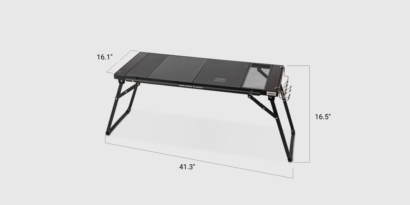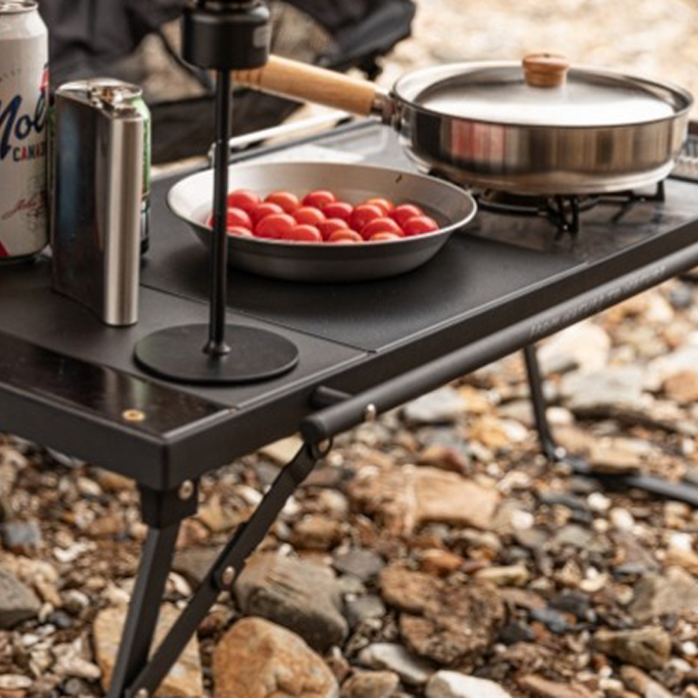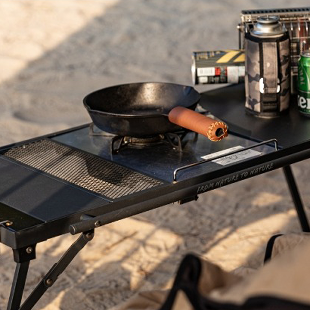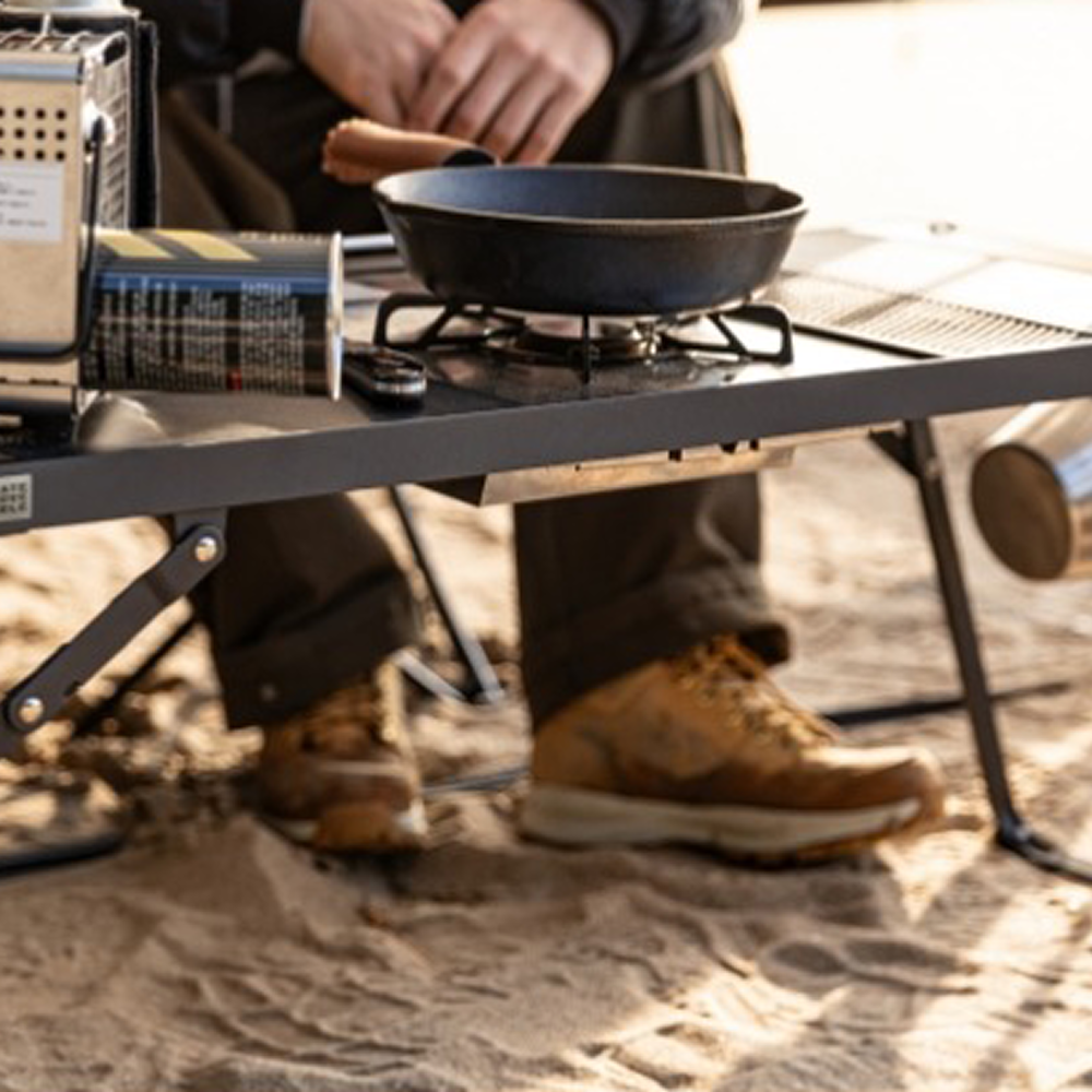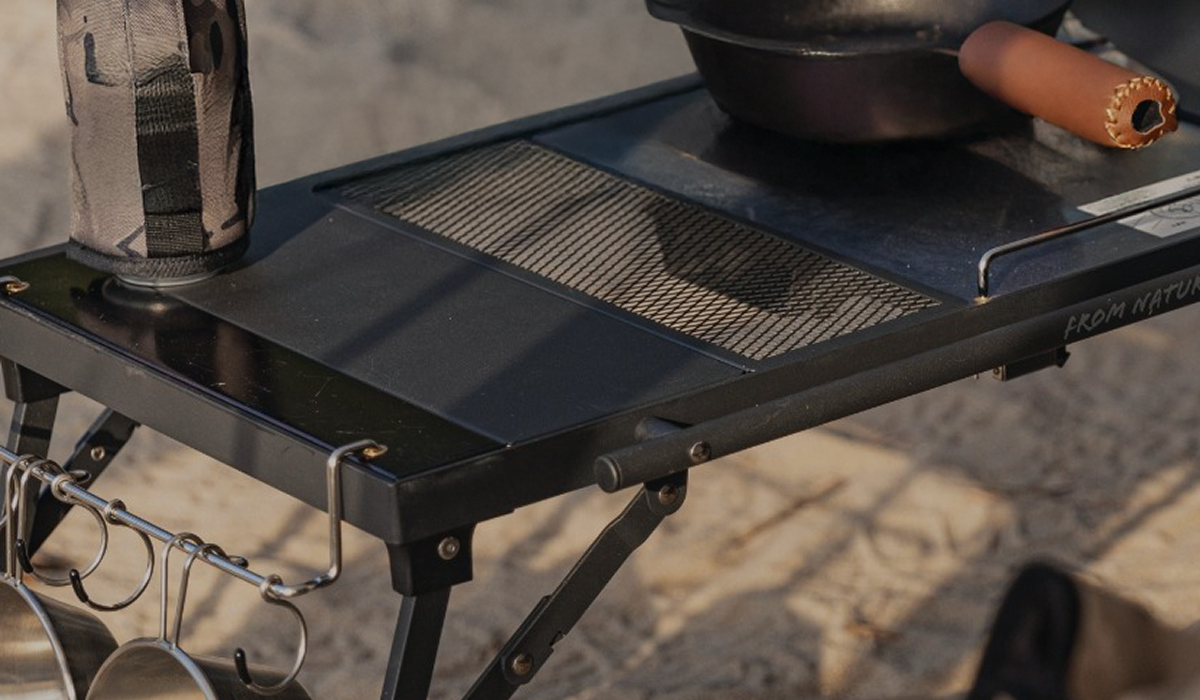 The Wild Plate Stove Table features a modular 3-unit top that lets you customize your outdoor kitchen, with durable brass side holes and elegant beech wood panels for strength and style. Its heat-resistant aluminum surface and quick-folding frame make setup, cooking, and transport effortless.