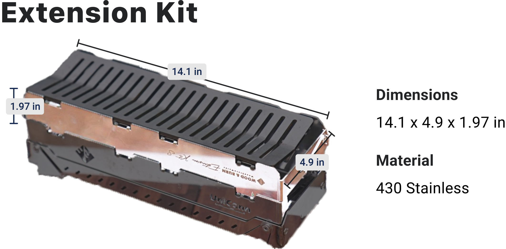 Wood & Burn's the extension kit addresses the Uniconn Firepit S's charcoal capacity, allowing for direct skewering without a grill. It fits seamlessly into the side pocket of the existing Uniconn Firepit S bag, maintaining the original storage setup. Enjoy longer grilling sessions without the need for frequent charcoal refills.