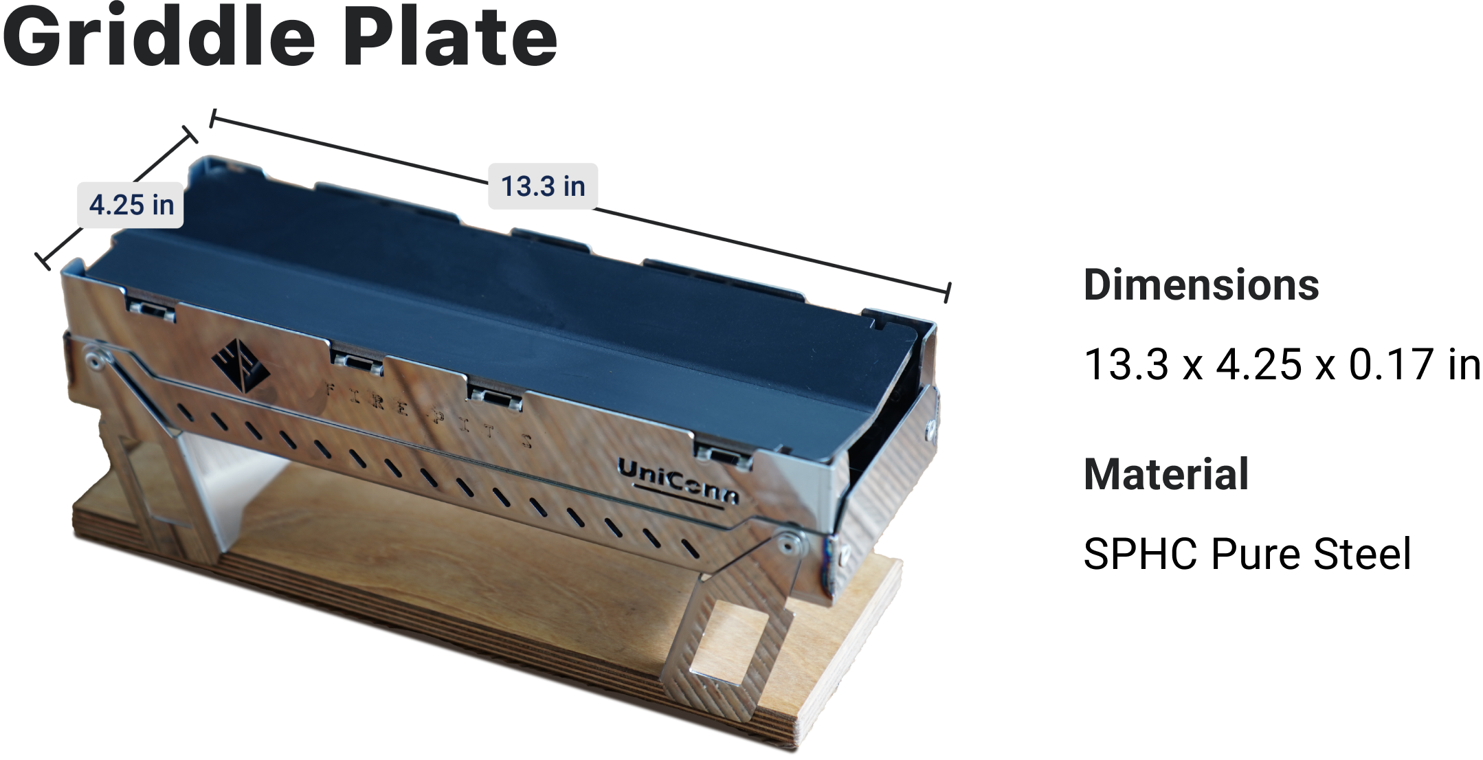 Wood & Burn's the non-coated rare iron griddle compatible with Uniconn S is ideal for cooking oily dishes. Its robust iron surface ensures even heat distribution and durability for all your outdoor cooking needs.